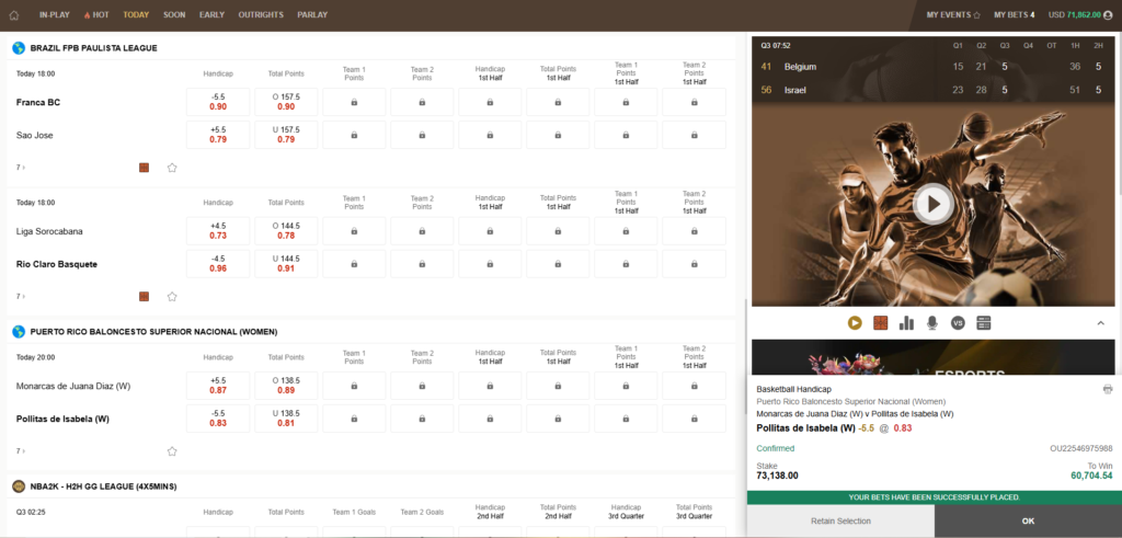 - Umfassendes Sportangebot: Egal, ob Sie Fan der Bundesliga, der 2. Liga oder internationaler Top-Ligen sind, bei Singbet finden Sie eine riesige Auswahl an Fußballwetten. Aber auch andere beliebte Sportarten wie Basketball (mit Fokus auf die BBL und internationale Ligen), Handball (insbesondere die HBL), Tennis (Grand Slams, ATP/WTA-Touren), Eishockey, Formel 1 und sogar eSports werden umfangreich abgedeckt. Die Vielfalt stellt sicher, dass für jeden Geschmack etwas dabei ist, von Mainstream-Events bis hin zu Nischensportarten, die eine tiefere Analyse erfordern.